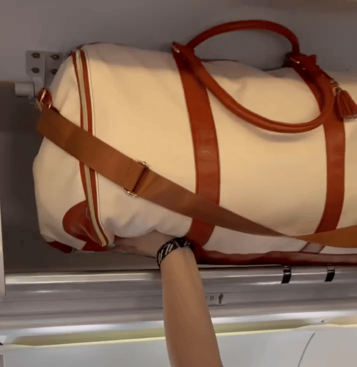 See how easily the LuxyBag fits in the overhead compartment. No waiting at baggage claim, no wasted time - just grab your bag and go. Perfectly designed for smooth, hassle-free travel.